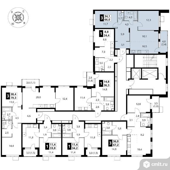 Перейти к актуальным объявлениям рубрики Квартиры. 3-комнатная квартира 66 кв.м - ЖК "1-й Шереметьевский"