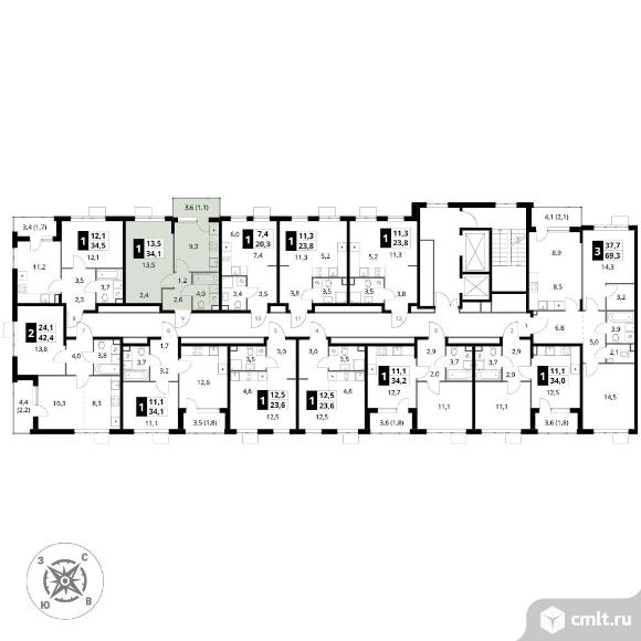 Перейти к актуальным объявлениям рубрики Квартиры. 1-комнатная квартира 34,1 кв.м - ЖК "1-й Шереметьевский"