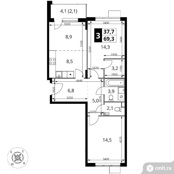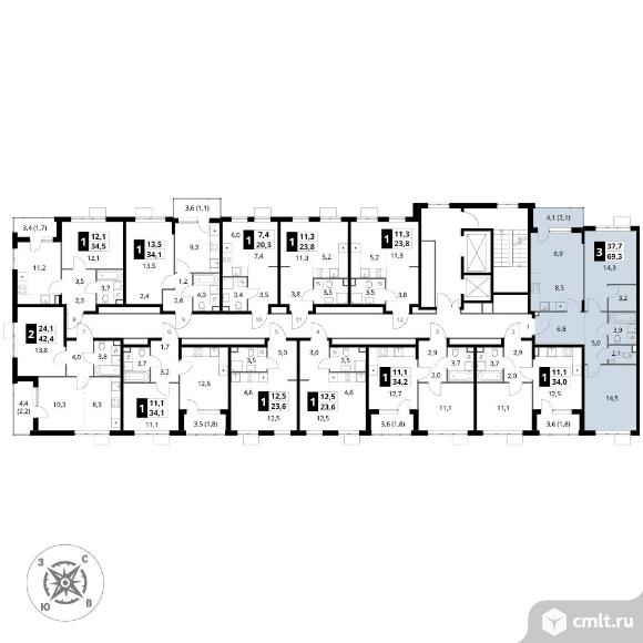 Перейти к актуальным объявлениям рубрики Квартиры. 3-комнатная квартира 69,3 кв.м - ЖК "1-й Шереметьевский"