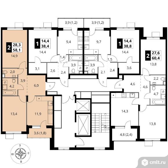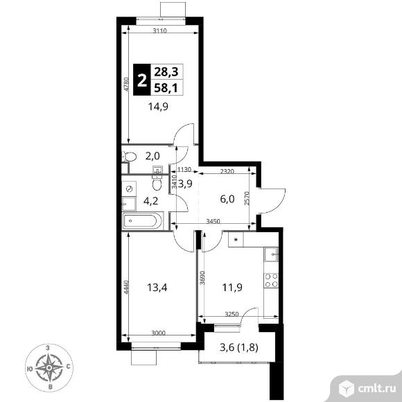 Перейти к актуальным объявлениям рубрики Квартиры. 2-комнатная квартира 58,1 кв.м - ЖК "1-й Шереметьевский"