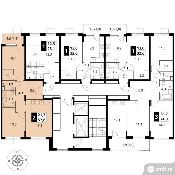 Перейти к актуальным объявлениям рубрики Квартиры. 2-комнатная квартира 57,8 кв.м - ЖК "1-й Шереметьевский"