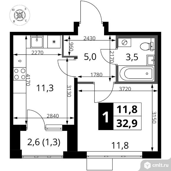 Перейти к актуальным объявлениям рубрики Квартиры. 1-комнатная квартира 32,9 кв.м - ЖК "1-й Шереметьевский"