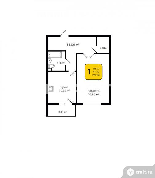 1-комнатная квартира 49,68 кв.м