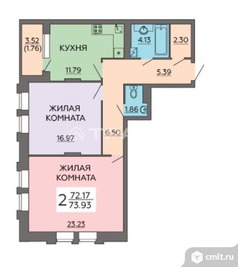 2-комнатная квартира 73,93 кв.м