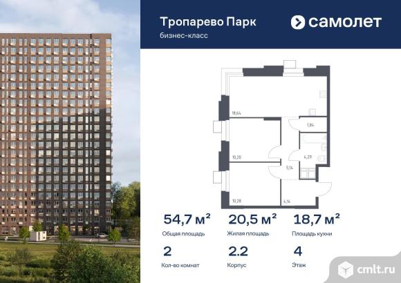 Предлагаются 2-комнатные апартаменты бизнес-класса 54,74 кв.м в корпусе 2.2 на 4 этаже, в МФК «Тропарево Парк»