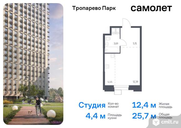 Апартаменты с чистовой отделкой. Доступность дополнительных опций уточняйте у застройщика. Прописка не предусмотрена в рамках юридического статуса - апартаменты. Планировкой предусмотрены: Зона_гостиной - 12,39 м? Прихожая - 5,15 м? Кухня-ниша - 4,44 м? Санузел - 3,69 м? Приобрести апартаменты возможно по специальным акциям от застройщика, с текущими условиями акций можно ознакомиться в блоке “Акций”. Цена динамическая и может отличаться, уточняйте актуальность у застройщика. «Тропарево Парк» — комплекс апартаментов бизнес-класса рядом с Ленинским проспектом, в Новой Москве. Находится всего в 10 минутах пешком от станции метро «Румянцево». Включает 7 жилых корпусов высотой от 16 до 23 этажей, приватные дворы-сады, обширную зеленую территорию с общественными пространствами. Из части апартаментов открываются виды на Тропаревский лесопарк, расположенный рядом. Застройщик: ООО "СЗ "Самолет-Дудкино". Проектная декларация на сайте наш.дом.рф 07.03.2025 07:47