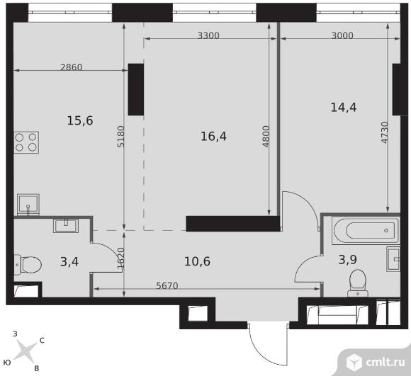 Перейти к актуальным объявлениям рубрики Квартиры. 2-комнатная квартира 64,3 кв.м - ЖК "Архитектор"