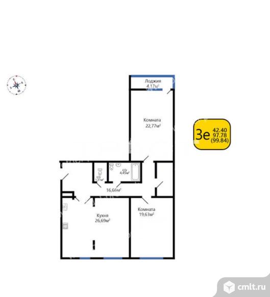 2-комнатная квартира 99,84 кв.м