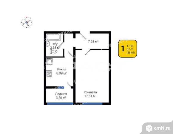 1-комнатная квартира 37,92 кв.м