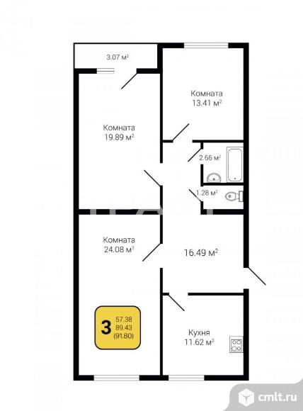 3-комнатная квартира 91,8 кв.м