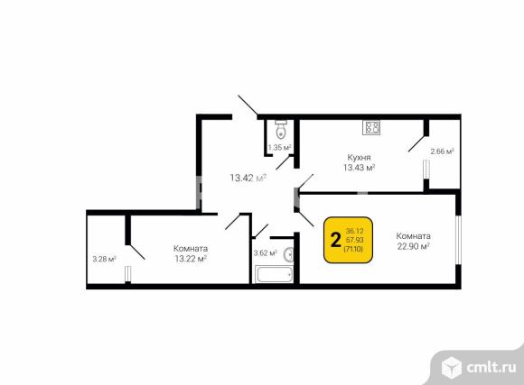 2-комнатная квартира 71,1 кв.м