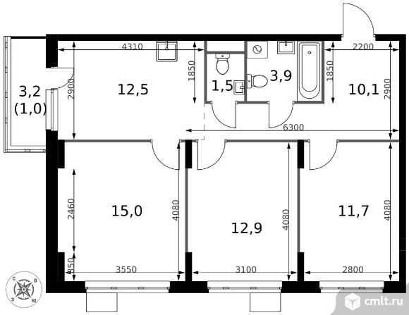 Перейти к актуальным объявлениям рубрики Квартиры. 3-комнатная квартира 68,6 кв.м - ЖК "1-й Донской"