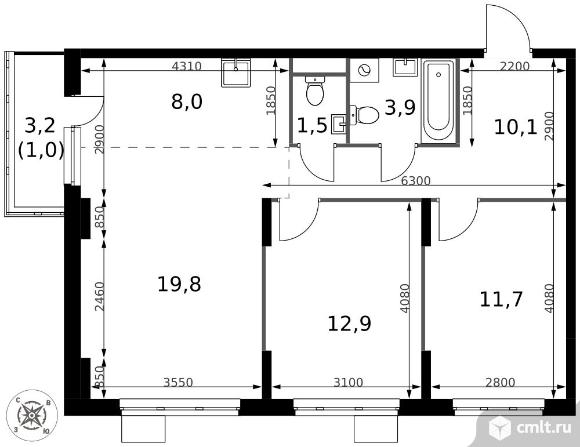 Перейти к актуальным объявлениям рубрики Квартиры. 3-комнатная квартира 68,9 кв.м - ЖК "1-й Донской"