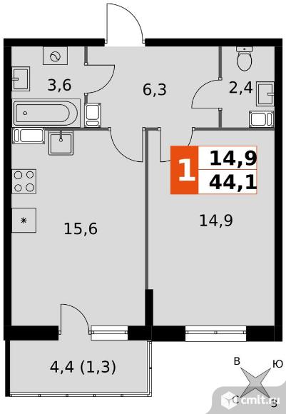 Перейти к актуальным объявлениям рубрики Квартиры. 1-комнатная квартира 44,1 кв.м - ЖК «Олимп»