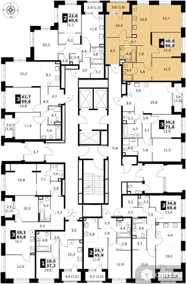 4-комнатная квартира 88,9 кв.м - ЖК "1-й Саларьевский"