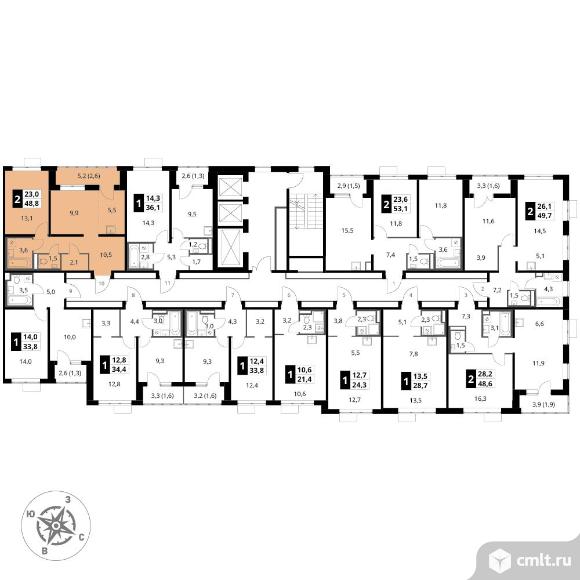 Перейти к актуальным объявлениям рубрики Квартиры. 2-комнатная квартира 48,8 кв.м - ЖК "1-й Донской"