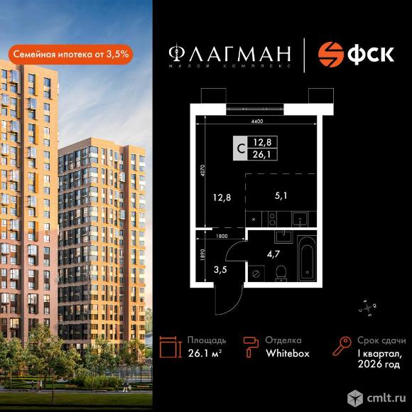 1-комнатная квартира 26,1 кв.м - ЖК "Флагман"