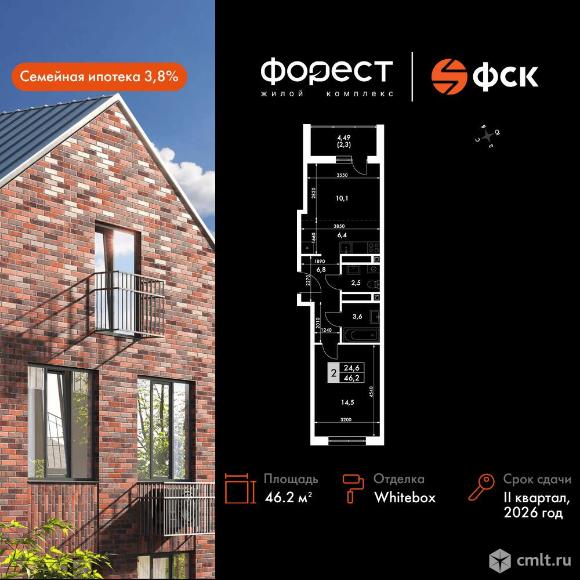 Перейти к актуальным объявлениям рубрики Квартиры. 2-комнатная квартира 46,2 кв.м - ЖК "ФоРест"