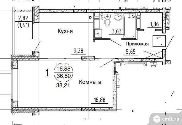 1-комнатная квартира 38,21 кв.м
