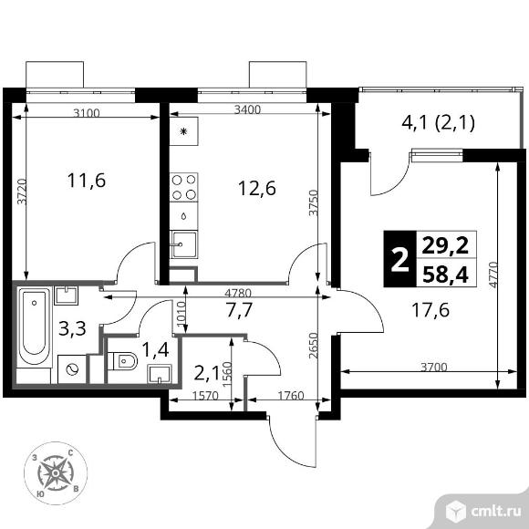 Перейти к актуальным объявлениям рубрики Квартиры. 2-комнатная квартира 58,4 кв.м - Южная Битца