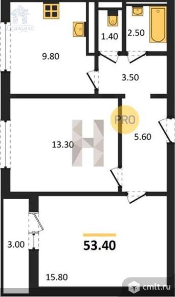 2-комнатная квартира 53,3 кв.м