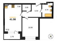 1-комнатная квартира 40,4 кв.м