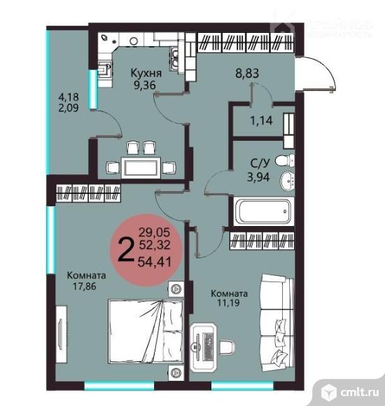 2-комнатная квартира 54,41 кв.м