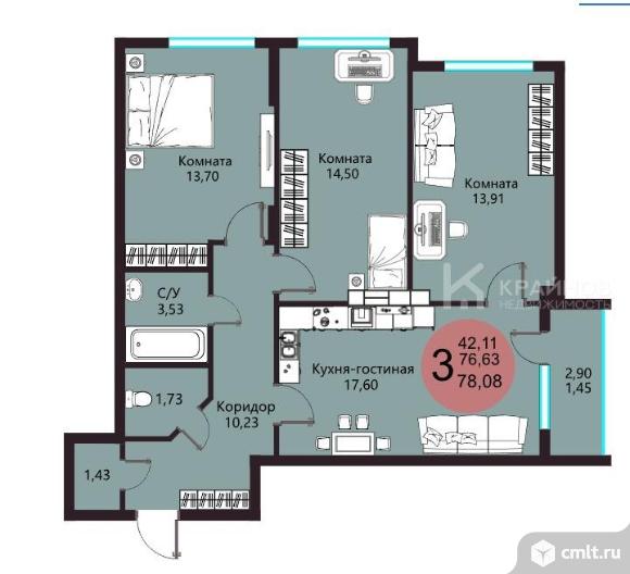 3-комнатная квартира 78,08 кв.м