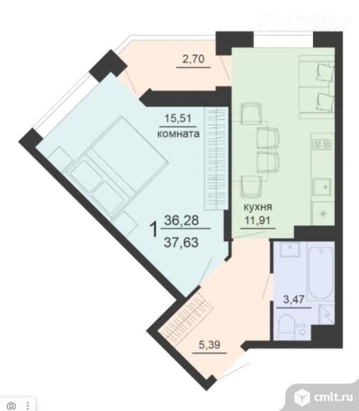 1-комнатная квартира 37,3 кв.м