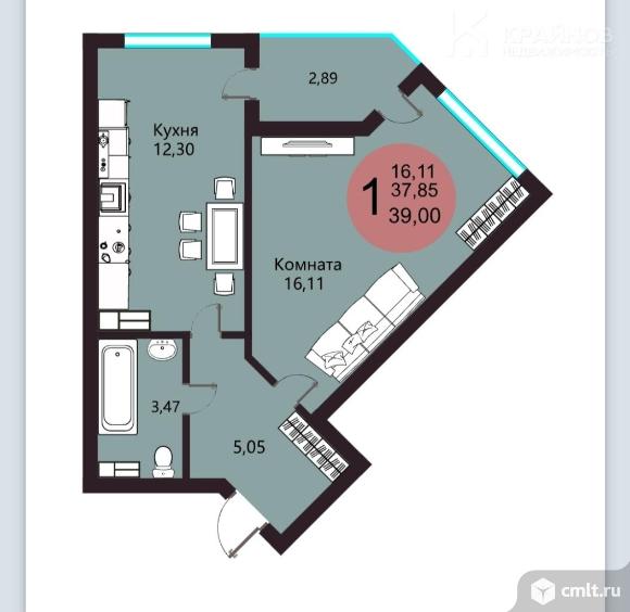 1-комнатная квартира 39,29 кв.м