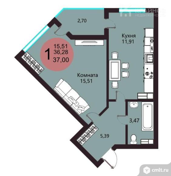 1-комнатная квартира 39 кв.м