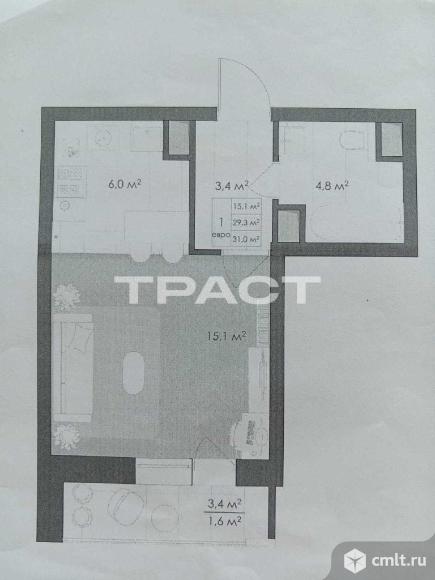 1-комнатная квартира 31 кв.м