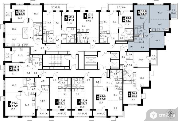 Перейти к актуальным объявлениям рубрики Квартиры. 3-комнатная квартира 64,7 кв.м - ЖК "1-й Саларьевский"