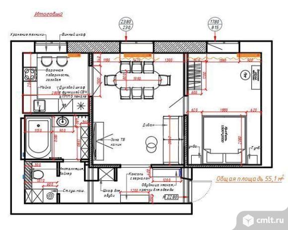2-комнатная квартира 55,1 кв.м