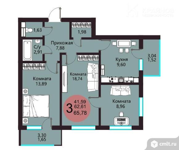 3-комнатная квартира 66 кв.м