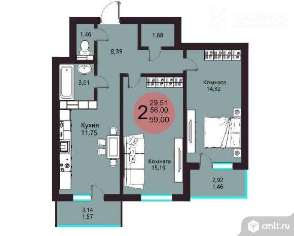 2-комнатная квартира 59,03 кв.м