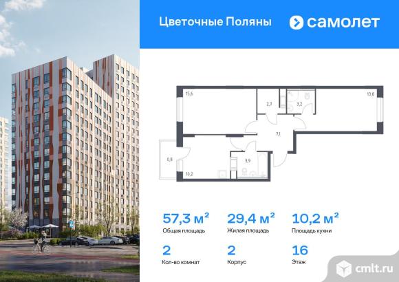 Строим кварталы для жизни с заботой о будущем. Предлагается 2-комнатная квартира комфорт-класса 57,3 кв.м в корпусе 2 на 16 этаже, в ЖК «Цветочные Поляны»