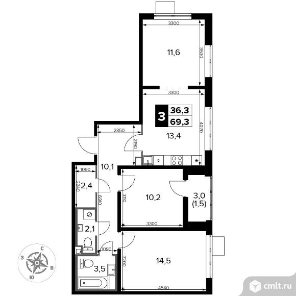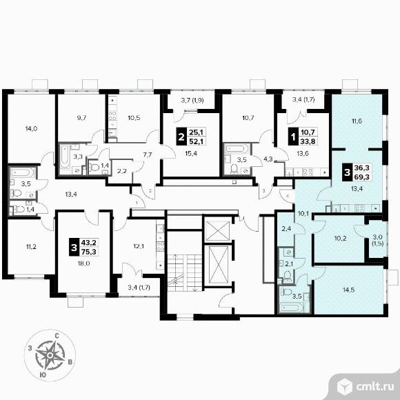 Перейти к актуальным объявлениям рубрики Квартиры. 3-комнатная квартира 69,3 кв.м - ЖК "1-й Донской"