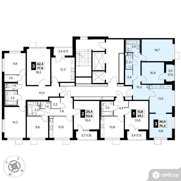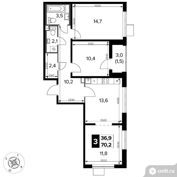 Перейти к актуальным объявлениям рубрики Квартиры. 3-комнатная квартира 70,2 кв.м - ЖК "1-й Донской"