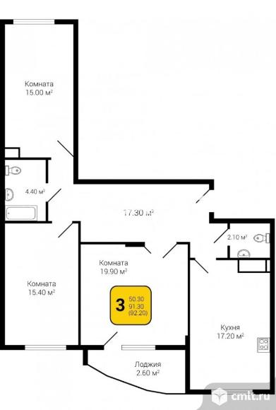 3-комнатная квартира 92,2 кв.м