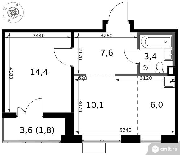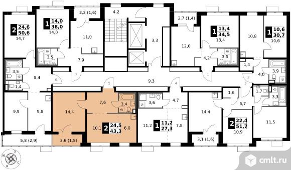 2-комнатная квартира 43,3 кв.м - ЖК "1-й Саларьевский"