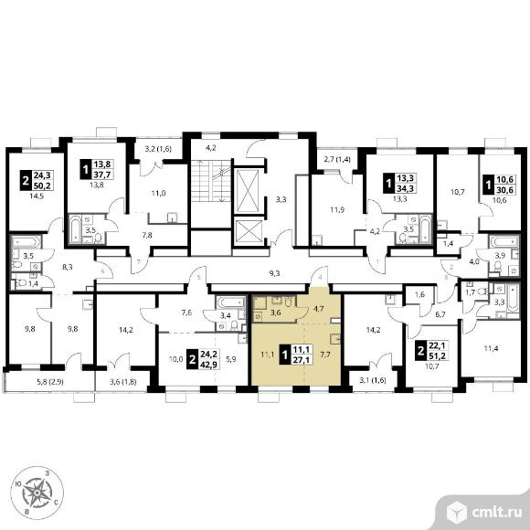 1-комнатная квартира 27,1 кв.м - ЖК "1-й Саларьевский"