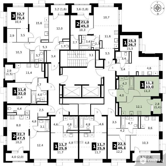 1-комнатная квартира 33 кв.м - ЖК "1-й Саларьевский"