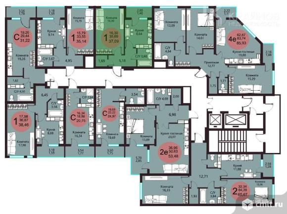 1-комнатная квартира 37,1 кв.м