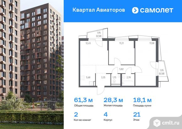 Предлагается 2-комнатная квартира комфорт-класса 61,29 кв.м в корпусе 4 на 21 этаже, в ЖК «Квартал Авиаторов»