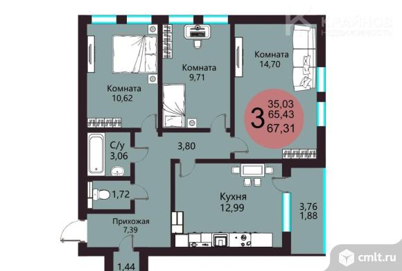 3-комнатная квартира 67,31 кв.м