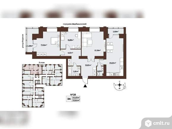 Продается 3-комн. квартира, площадью 89.9 м2.