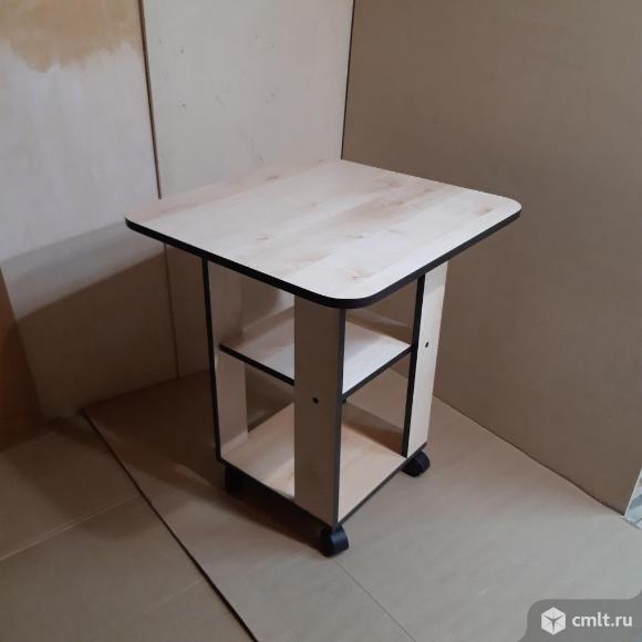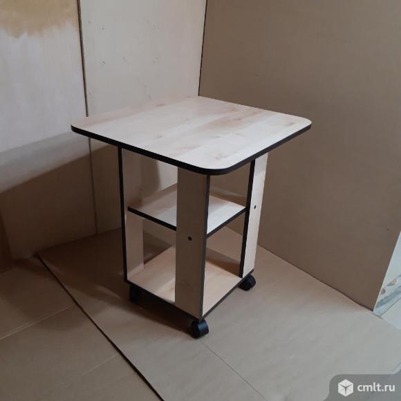 Журнальный столик на колёсах , цвет бежевый ( кромка венге ) фото (1 - 2) . Размеры столешница : 575\540 , выс - 647 . Журнальный стол светло - серого цвета фото ( 3 - 4 ). Материал столешницы ЛДСП толщина 25 мм , основание стола 16 мм . Размеры 800 \597 , выс - 720 ( 730 ) . Регулируемые по высоте ножки. Стол новый !!!