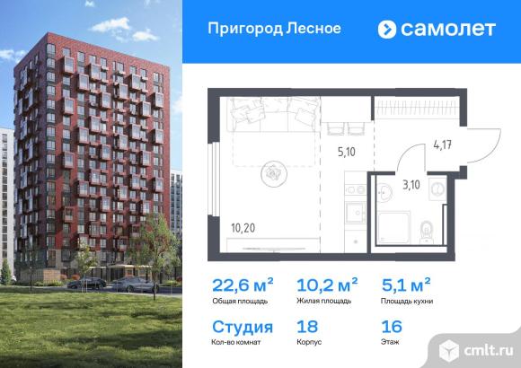 Предлагается квартира студия комфорт-класса 22,57 кв.м в корпусе 18 на 16 этаже, в ЖК «Пригород Лесное»