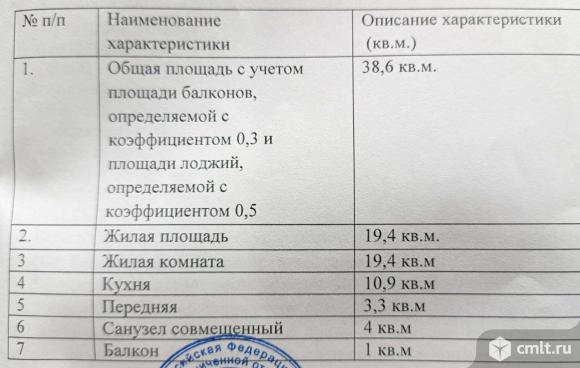 1-комнатная квартира 38,6 кв.м